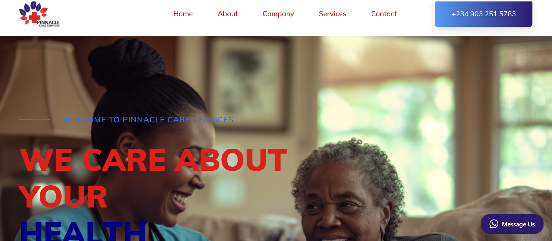 Healthcare Website The Pinnacle Care Services website, built by our team, delivers a sleek, user-friendly platform showcasing their caregiving, physiotherapy, and training services. With integrated Staff ID Verification, visitors can easily explore services, register for programs, and book appointments with confidence.